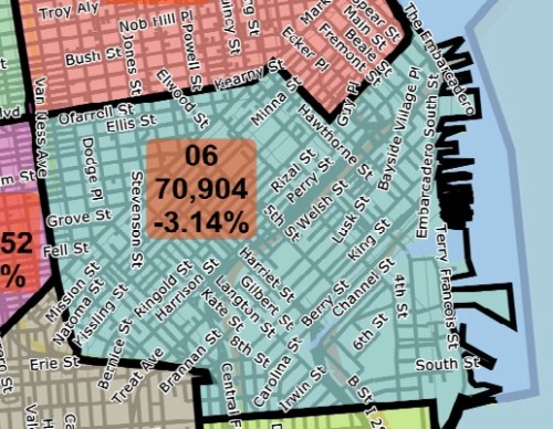 The Redistricting Task Force released their first draft of a redesigned District 6 last week. The newly drawn boundaries shed 29% of excess population by eliminating Hayes Valley and the north Mission. Continue reading