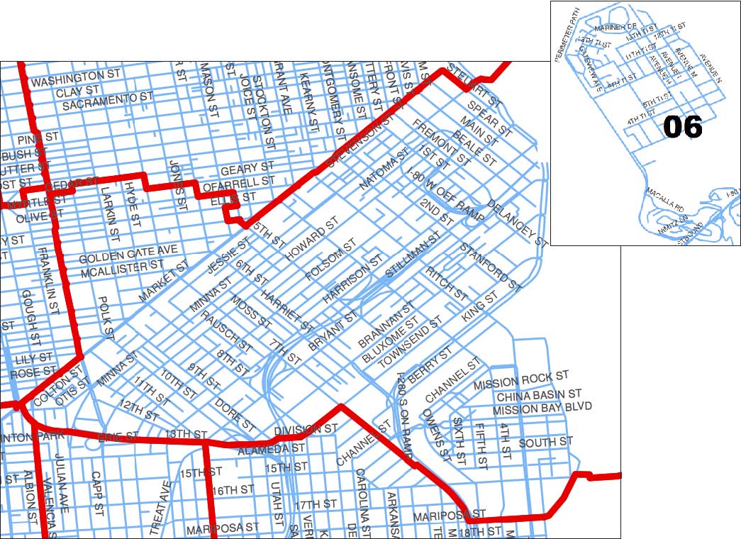 With the deadline for a final redistricting map fast approaching, the latest draft of District 6 looks familiar, with two notable exceptions. South of Market and the Tenderloin are almost completely intact and Treasure Island is still part of the district. But the portion of Hayes Valley and the North Mission that were part of this district for the last ten years are now included in Districts 5 and 9 respectively. Continue reading